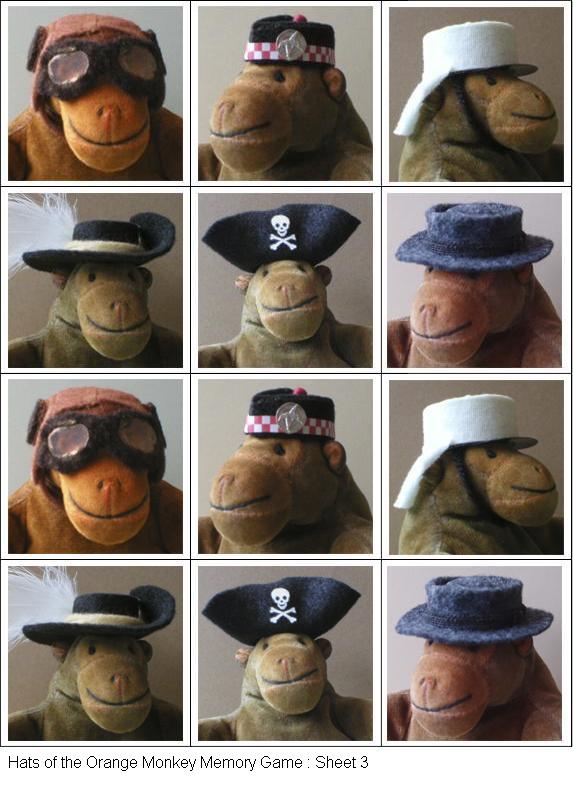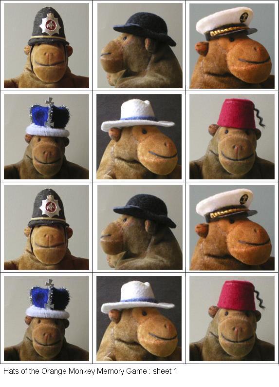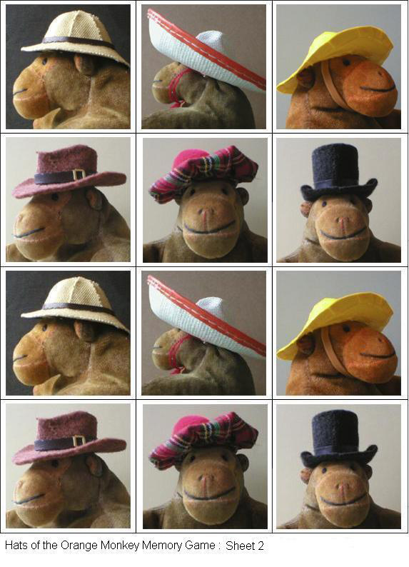 One morning, Mr Monkey thought that his hats deserved to be the focus of a game of some sort. So he posed for a set of pictures, and badgered Mr Rik into turning them into cards for the classic Pelmanism memory game.