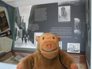 Mr Monkey went into the front room, to examine the temporary exhibition, which was about Dickens's concern with social issues. The exhibition covered several subjects including the abuse of children in Yorkshire boarding schools, the death penalty, fallen women and the breeding of crime in rookeries. Generally, Mr Dickens was against bad things.
