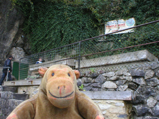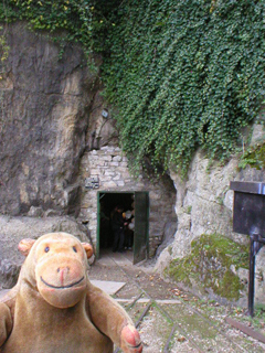 When Mr Monkey had gone into the museum he had made sure his humans had bought tickets for the tour of the Temple Mine as well. When the tour started Mr Monkey followed the guide across the road and up a steep slope to the Temple Mine. Mr Monkey looked around outside for a moment or two while he waited for the front door of the mine to be unlocked.