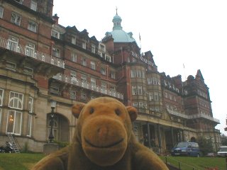 Mr Monkey decided to stay at the Majestic Hotel, which is where all the events were going to be. He was interested to see that there was a fountain outside his room, and that the back of the hotel faced Harrogate.