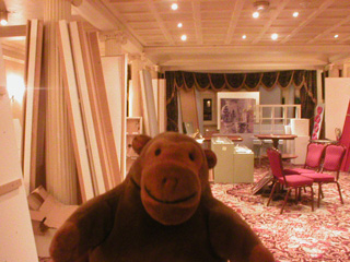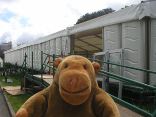 When Mr Monkey got to the Majestic Hotel, he found that they hadn't tidied up after the massive Home and Gift 2004 trade show. This apparently involved putting big tent things on the lawns, filling the ground floor with trade stands, and taking a month to clear up properly.