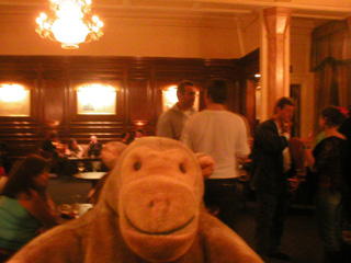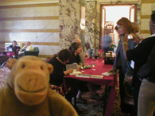 After each panel, the authors signed copies of their books. In the left hand picture, Louise Welsh and Denise Mina sign books after the Tartan Noir panel. Apparently, authors don't spend all their time writing, and Mr Monkey carefully observed some of them in the bar of the Majestic.