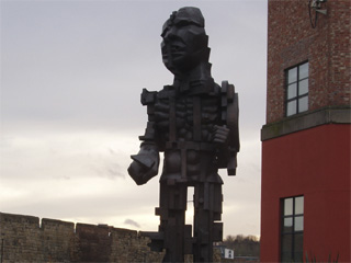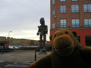 At the end of Orchard Street, Mr Monkey was slightly unnerved to see a seven metre tall chap with a broken up face standing outside Central Square, an office block which used to be a Royal Mail sorting office. After he'd decided he wouldn't want to meet Sir Eduard Paolozzi's Vulcan in a dark alley, Mr Monkey scampered off to Central Station, where he caught the Metro to South Shields.