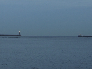 Mr Monkey walked through an area which claims to be Cliffords Fort, built as a defence against the Dutch during the Third Anglo-Dutch War in 1672. There's not really much of a fort left now, but there is the Old Low Light*. This was painted black when it stopped being a seamark to guide ships into the Tyne, so that seagoers didn't mistake it for the new Low Light (that's the white thing behind the cottage). He kept going, and was soon able to see the lighthouses on the ends of the piers guarding the mouth of the Tyne.