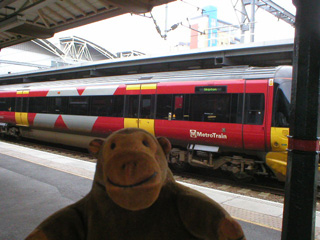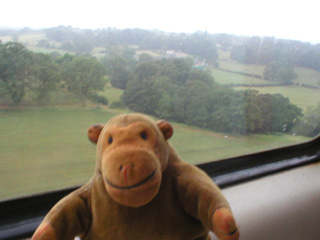 From Leeds, Mr Monkey took another train, admiring the countryside as he rolled along to Harrogate. He arrived in Harrogate far too early to check in to his hotel, so he left his luggage there, and set off into town for breakfast at Betty's tea rooms.