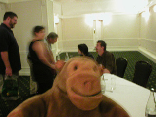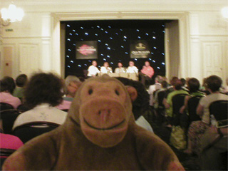 Over the weekend Mr Monkey went to many panels to hear authors talking about their work. In between the panels he bought books in a room that Ottakars had disguised as a bookshop, and had them signed by the authors, who were chained to tables in the next room*. On Saturday, Mr Monkey heard Barbara Cleverly, James McGee, Robert Ryan, Olen Steinhauer and Andrew Taylor talking about writing historical mysteries, Kate Atkinson talking to Peter Guttridge about her work, and John Connolly, Stella Duffy, Shane Maloney, Charlie Williams and Marcel Berlins talking about unique voices in crime fiction.