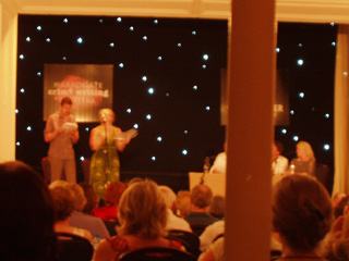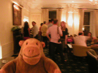 After his evening meal, Mr Monkey went back to the Old Swan for the evening entertainment. This was another Foul Play, written by Simon Brett, in which Shane Maloney and Laura Wilson had to solve a fiendish murder, helped only by overacting from Stella Duffy and Mark Billingham. Mr Monkey correctly worked out that Stella had murdered herself, only she was two different people at the time, so that was okay. Afterwards, and at various other times over the weekend, Mr Monkey went to watch people chattering in the bar.
