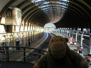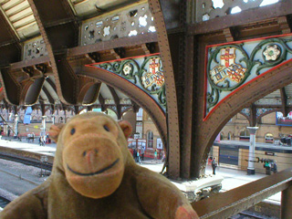 Mr Monkey took one train from Stockport to Manchester, and another from Manchester to York. When he got to York he spent a few minutes looking at the rather magnificent roof and ornate decoration of the station, then went and left his luggage at his hotel.