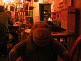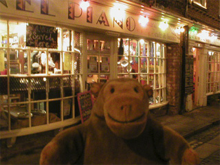 Mr Monkey took his humans to El Piano on Grape Lane, where they had a fine vegetarian meal, and marvelled at the decoration of the restaurant. Mr Monkey bought some crockery from the bazaar section of the restaurant, then led his humans back to their hotel.