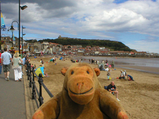 On the promenade, Mr Monkey looked both to his left and right across the South Bay, before setting off walking towards the headland and the castle.